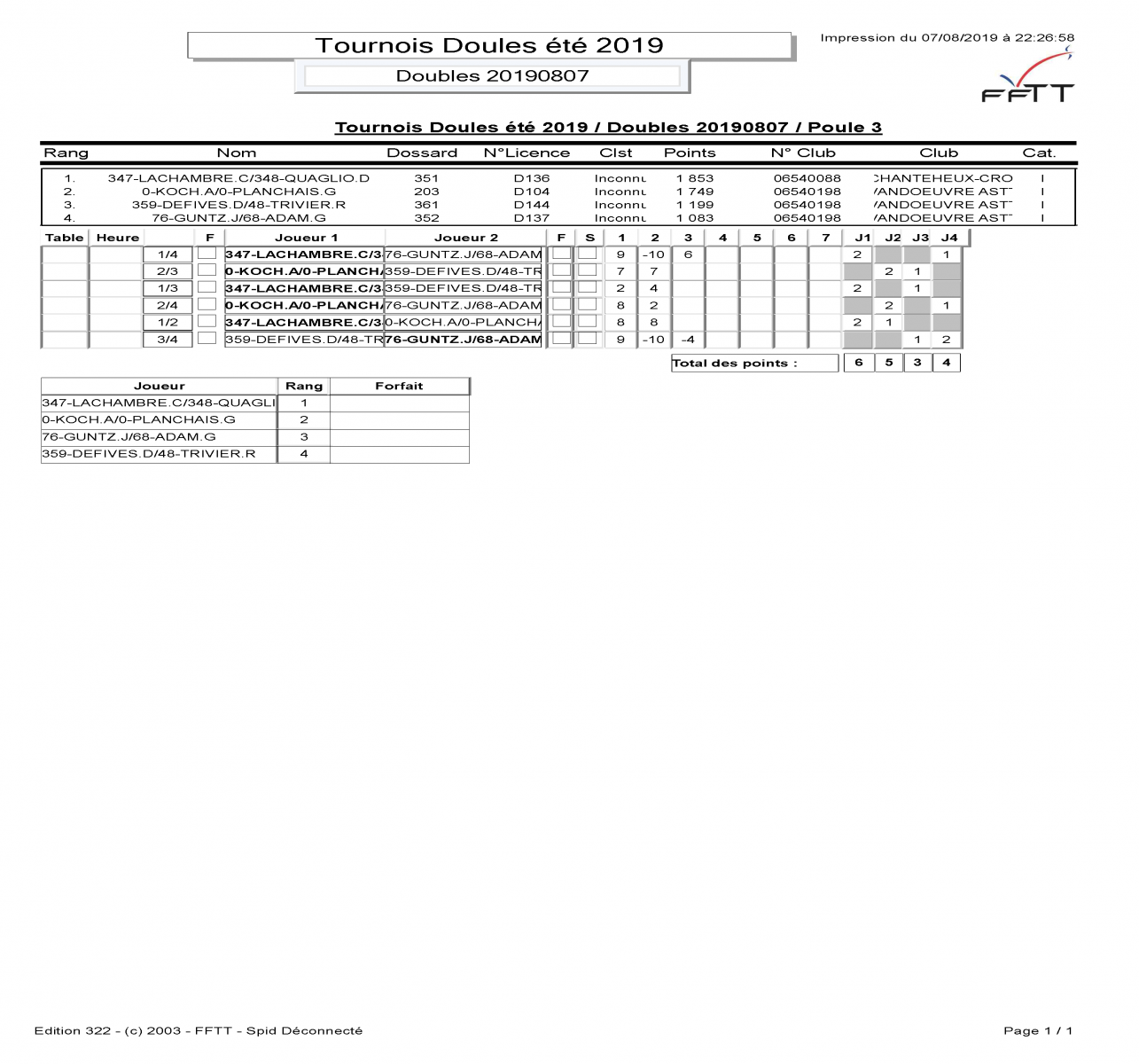 Cette fois-ci, nous avons créés au départ 4 poules de 4. Et ensuite nous avons continués sur un tableau de 16.