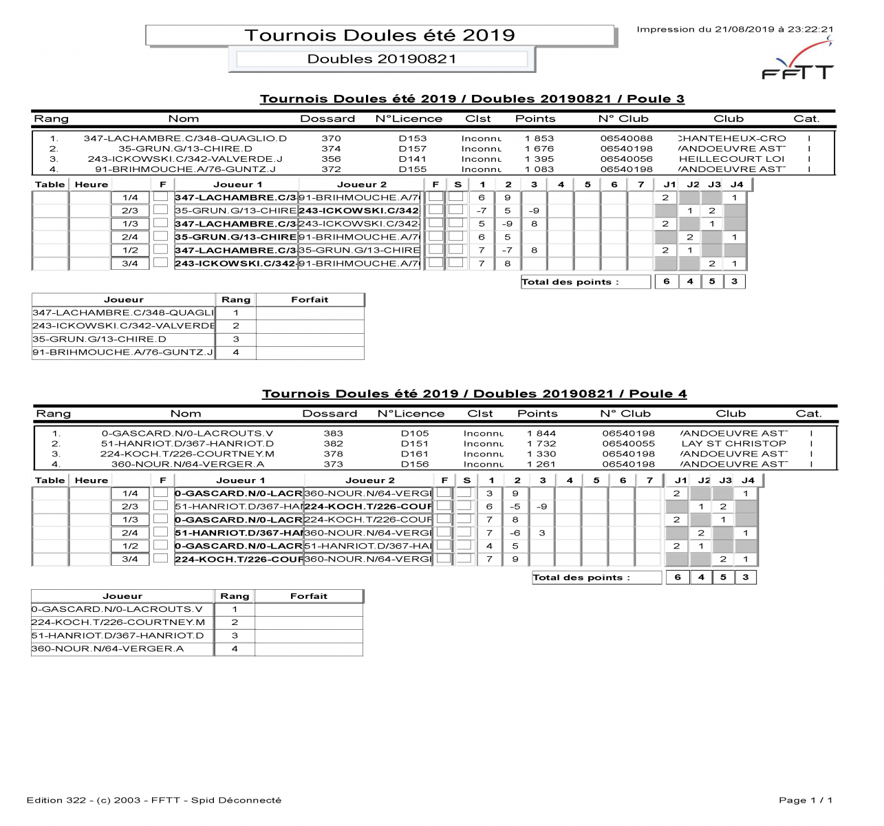 Voici le résultat des poules et du tableau final: